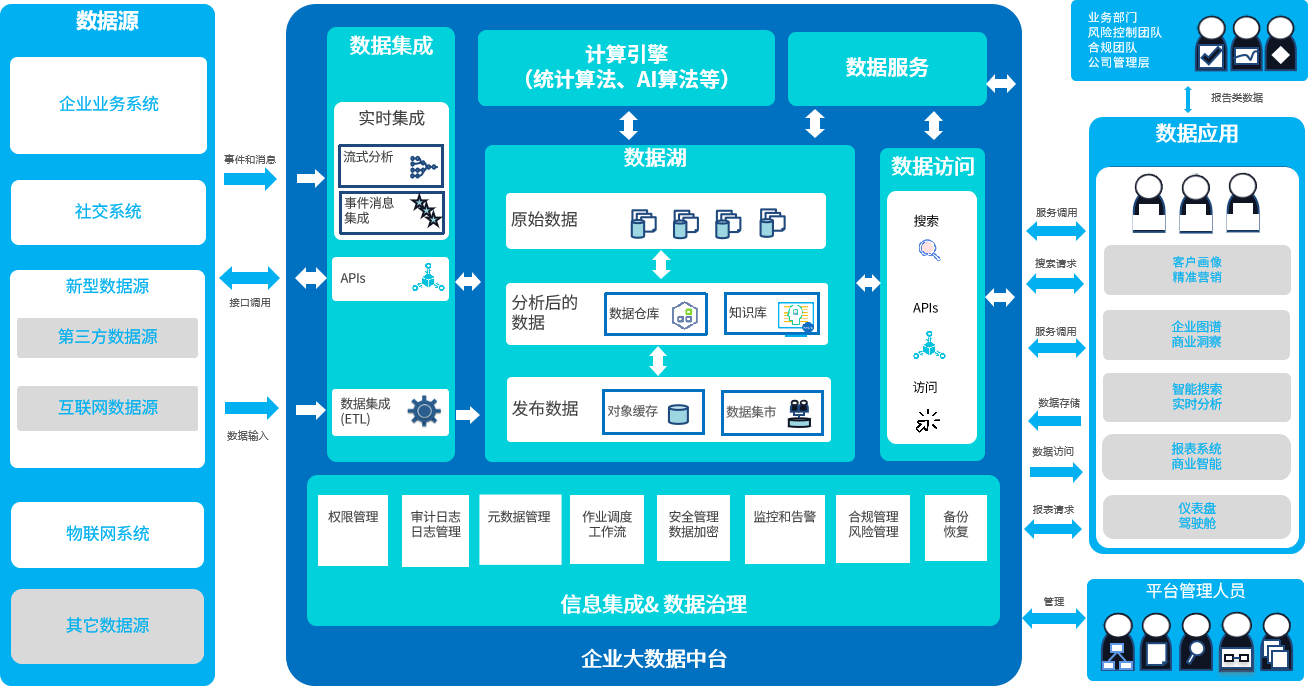隨著數據時代的來臨,越來越多的企業(yè)想通過數據驅動來進行精細化的運營和數據化轉型,與行業(yè)內熟知的數據中臺共通的是,法本信息大數據中臺連接數據前臺和后臺,突破數據局限,為企業(yè)客戶提供更靈活、更高效、更低成本的數據分析挖掘服務,避免企業(yè)客戶為滿足具體某部門某種數據分析需求而投放大量高成本、重復性的數據開發(fā)成本,真正實現不同業(yè)務之間的互通互融。